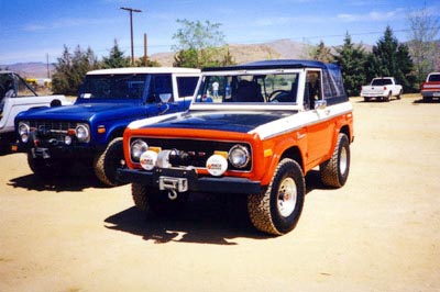 To start with he moved the Cibie lights around to the rear bumper and added some high power aftermarket lights to the original winch bumper. Tyler had upgraded the stock suspension with a Wild Horses 2.5" when I took these photos at the Bronco 30th anniversary. Other mods include a front cage kit for the rollbar and an Autometer Tachometer. Rounding out the Baja is a Kayline Convertible top over the original paint job.